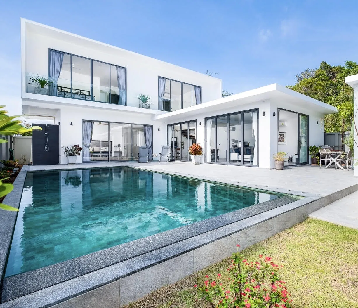 Modern luxury private Pool Villa with 3 ensuite bedrooms, utility room and powder room. La